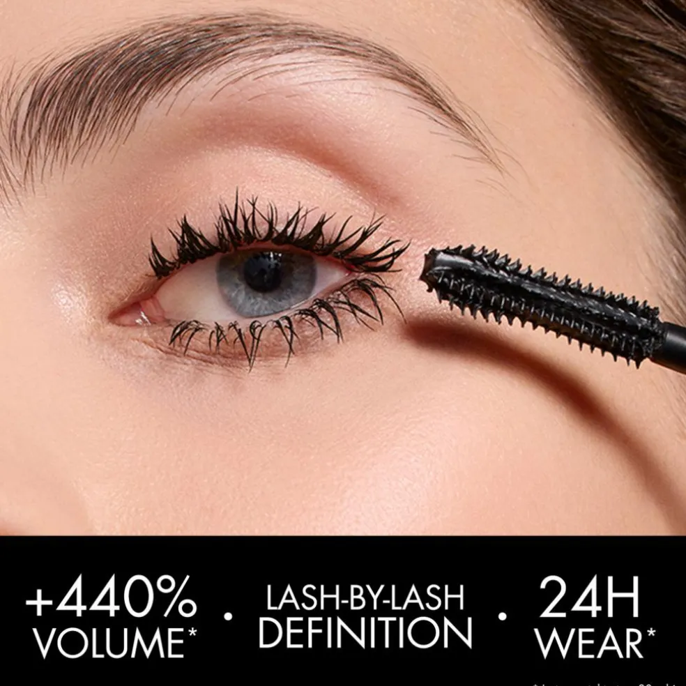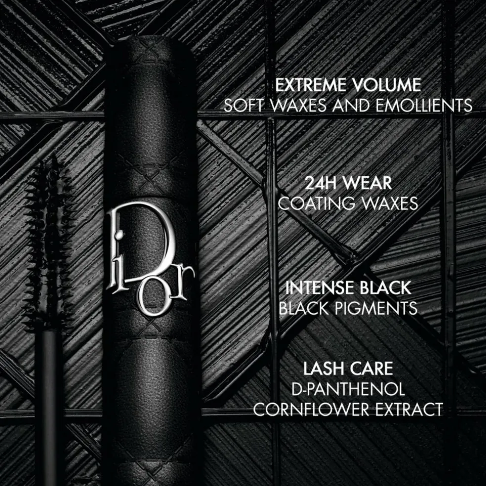 Diorshow Overvolume: Mascaraen, der kombinerer ekstrem volumen og definition vippe for vippe. Denne mascara giver øjeblikkeligt 440 %* mere volumen kombineret med mere definition vippe for vippe med et vifteformet look som resultat. Den er intenst pigmenteret og dækker vipperne med en dyb sort farve, der ikke smitter af og holder i 24 timer.* Etuiet til denne Dior-mascara er udsmykket med cannage, husets ikoniske couturesymbol.