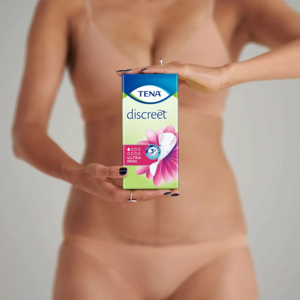 Til kvinder, der oplever lettere inkontinens. Med sine 19 cm i længde og bare 3 mm i tykkelse er TENA Lady Ultra Mini en smule længere end TENA Lady Mini Magic. Det er lige så diskret som et trusseindlæg, men har en meget højere absorberingsevne, beregnet specielt til at indkapsle tynd væske.