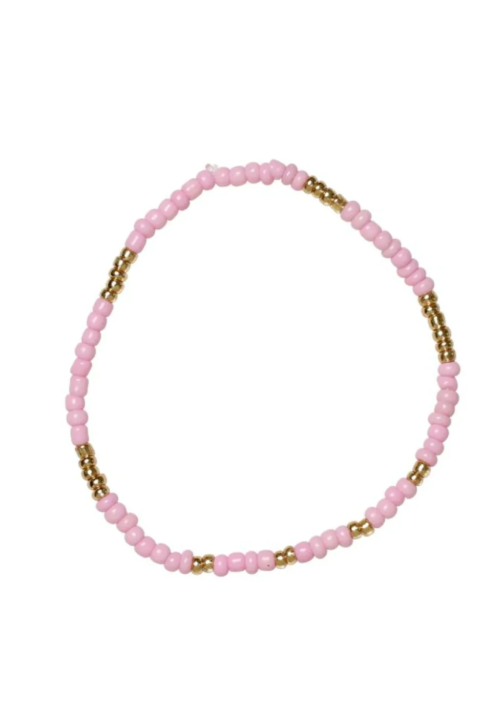 - Perler: Ferskvandsperler, guld og pink glasperler