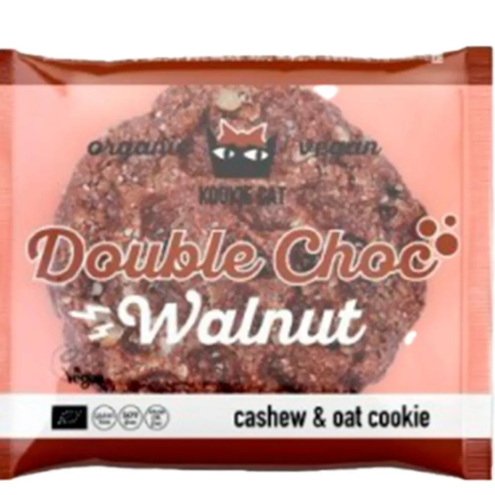 Småkage med kakao nibs og valnød.