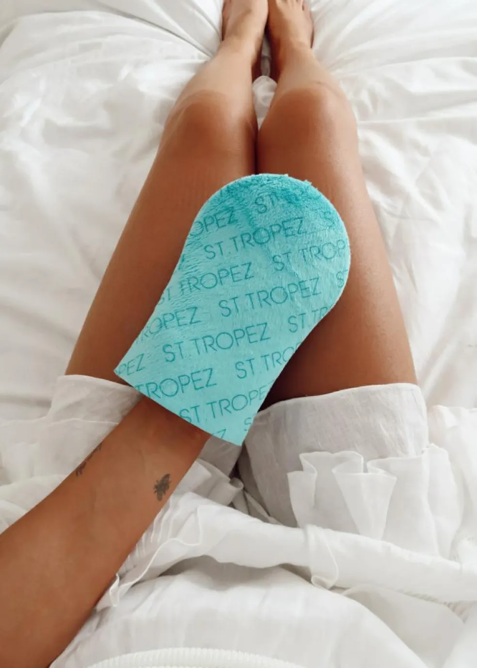 St.Tropez Dual Sided Velvet Luxe Tan Applicator Mitt anvendes til hurtig, jævn påføring af selvbruner mousse og lotion for at opnå et jævnt og perfekt resultat. En beskyttende film inde handsken forhindrer produktet i at komme på hænderne.