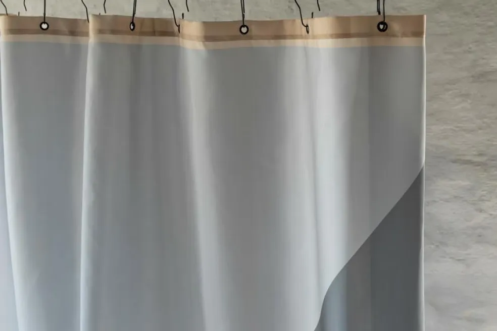 Badeforhænget er fremstillet i 100 % polyester og er skimmel- og vandafvisende.