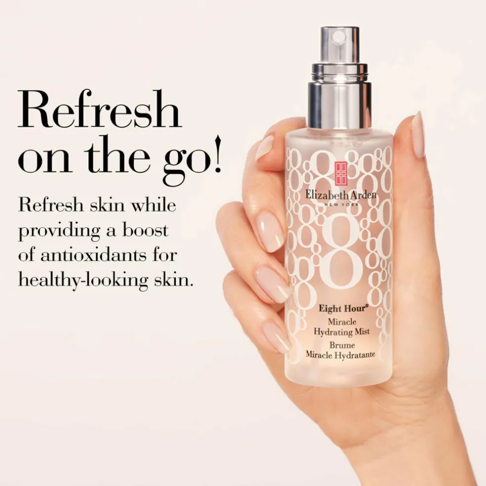 Eight Hour® Miracle Hydrating Mist indeholder en Superfruit Blend med masser af antioxidanter, der styrker huden og giver en sund glød. Formlen indeholder også beroligende ekstrakter, og hvert spray lindrer og beroliger øjeblikkeligt huden, der samtidig forkæles med masser af fugt. Resultatet er en øjeblikkelig fugtmættet hud med en sund glød.