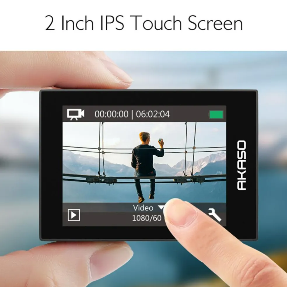 Med AKASO EK7000 Pro actionkameraet kan du optage 4K-video med 25 billeder pr. sekund og 20 MP-fotos, mens du nyder godt af et væld af funktioner som touchscreen-understøttelse, WiFi-forbindelse, helt ned til 40 meters dybde med det vandtætte etui (medfølger i pakken) og EIS 2.0-billedstabilisering.