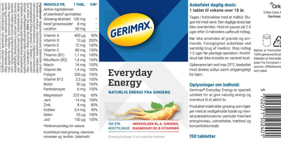 Ginseng hjælper med at vedligeholde fysisk og mental præstationsevne i perioder med lavt energiniveau, udmattelse, træthed og tab af koncentration.