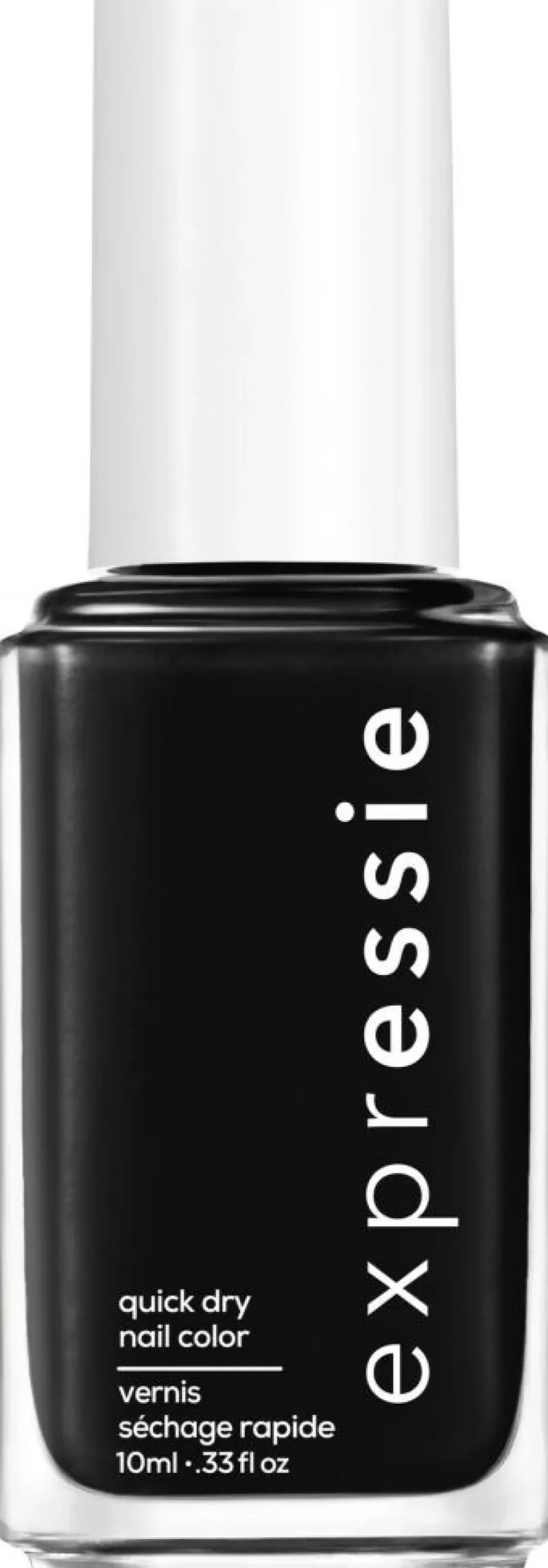 essie expressie now or never er en intens sort hurtigtørrende neglelak.