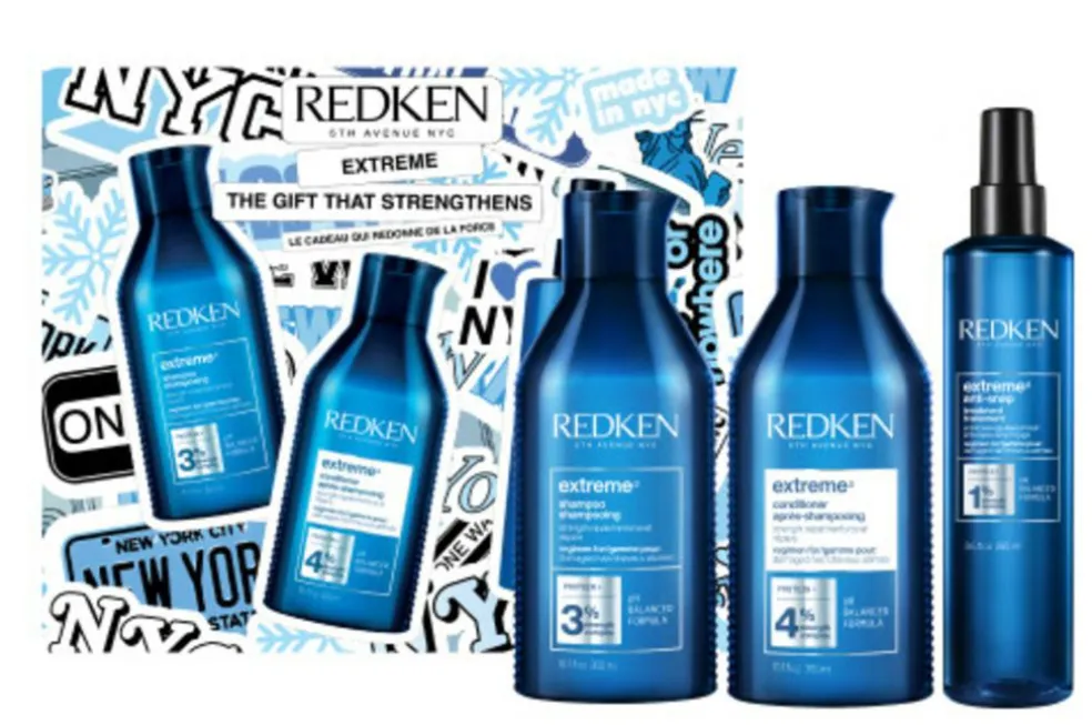 Opdag Redken Extreme-julegaveæske, som indeholder: Redken Extreme Shampoo, Redken Extreme Conditioner, og vores bestseller Redken Extreme Anti-Snap Treatment.