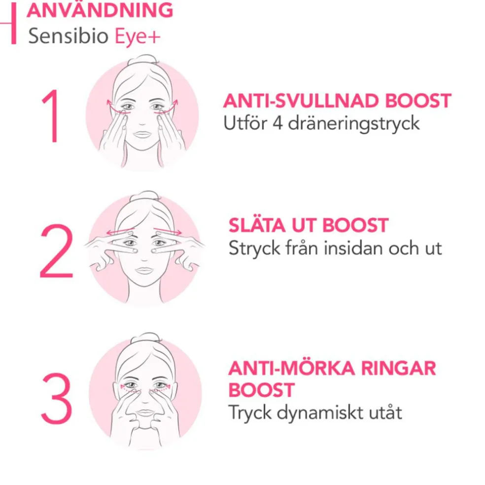 *Brugertest under dermatologisk og oftalmologisk kontrol, 33 personer, 26-65 år, med sensitiv hud og trætte øjenomgivelser (mørke rande, hævelser, fine linjer, rynker (kragetæer), i 28 dage.
