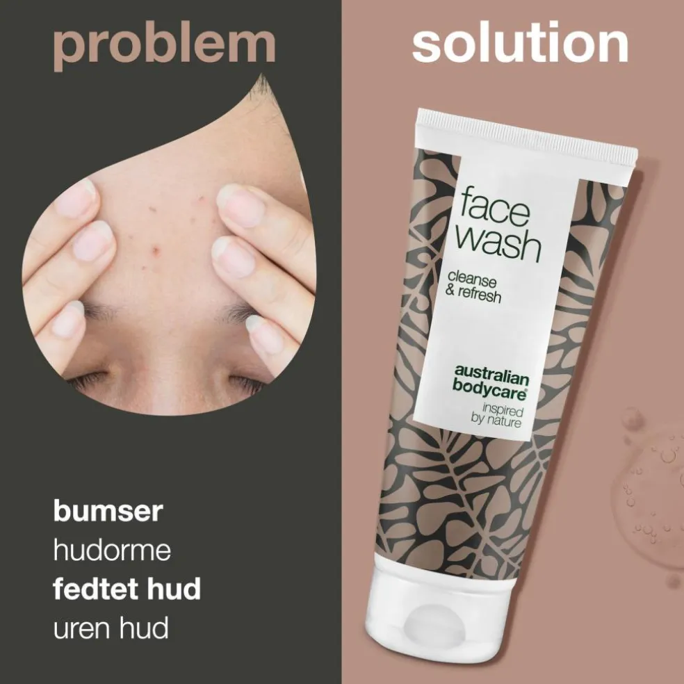 Ansigtsrens fra Australian Bodycare indeholder 100% naturlig Tea Tree Oil fra Australien og er effektiv mod hudorme, bumser og uren hud i ansigtet.