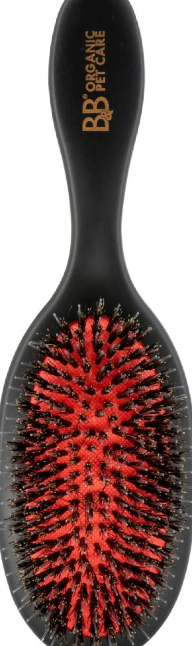 Børsten har bløde og skånsomme børstehår, der effektivt fjerner løse hår, snavs og knuder uden at irritere din hunds eller kats hud.