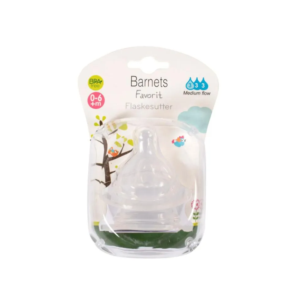 – Silikone flaskesut slow som supplement til sutterflaskerne fra Barnets Favorit.