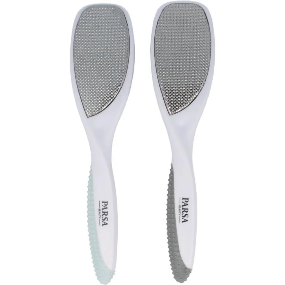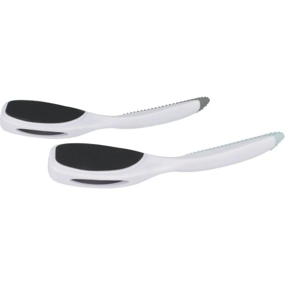 Vores tosidede fodfil giver sikker og skridsikker håndtering, selv på svært tilgængelige steder. Den ru side fjerner selv den mest genstridige hårde hud mens den fine side udglatter huden og giver fødderne en blød fornemmelse!