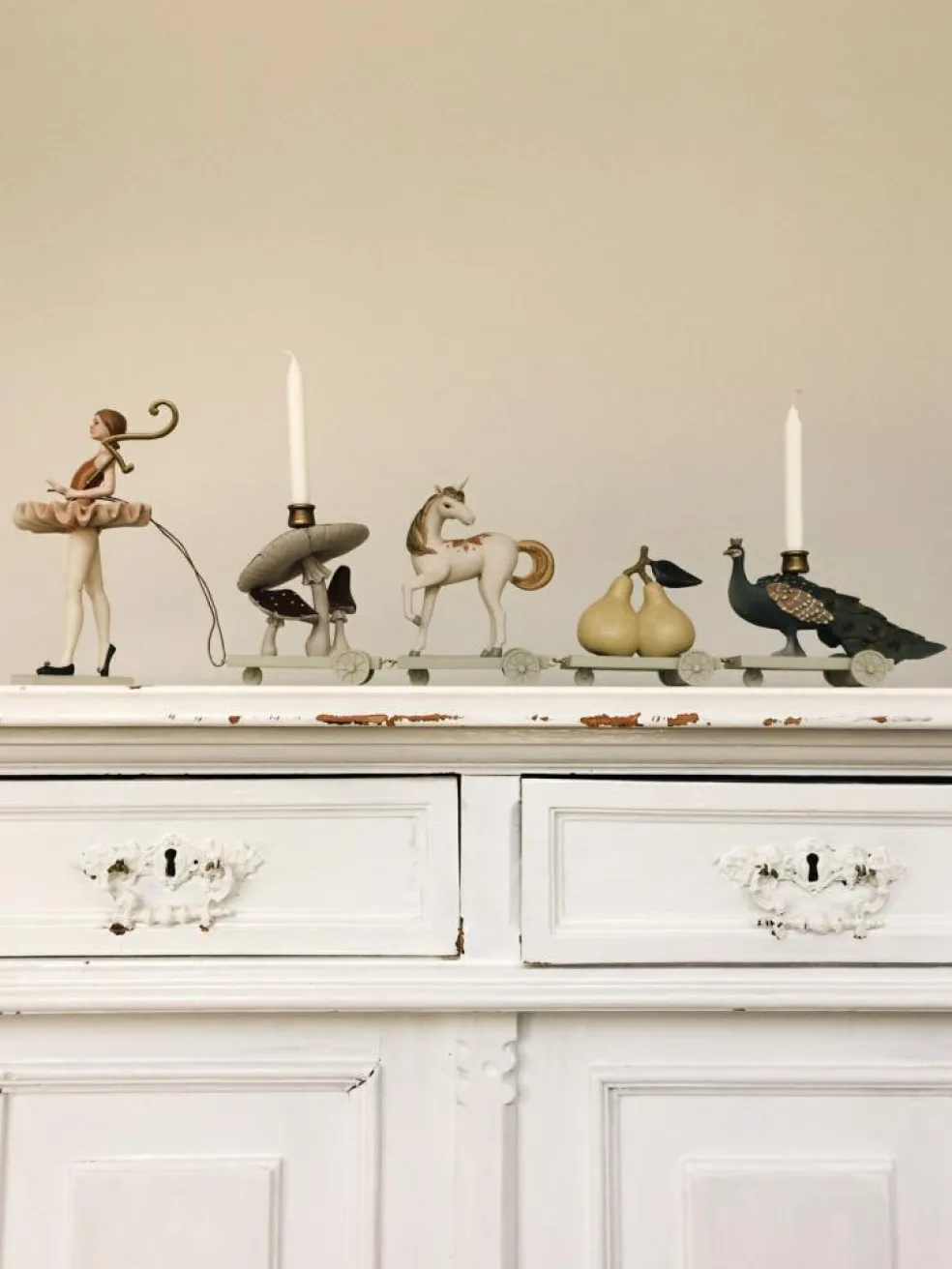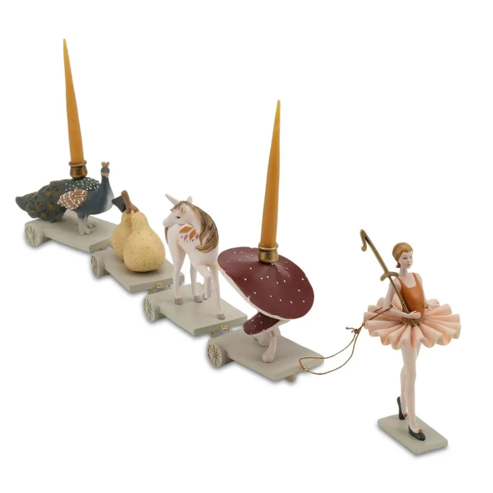 • Ballerina går med svampe, en enhjørning, pærer og en påfugl