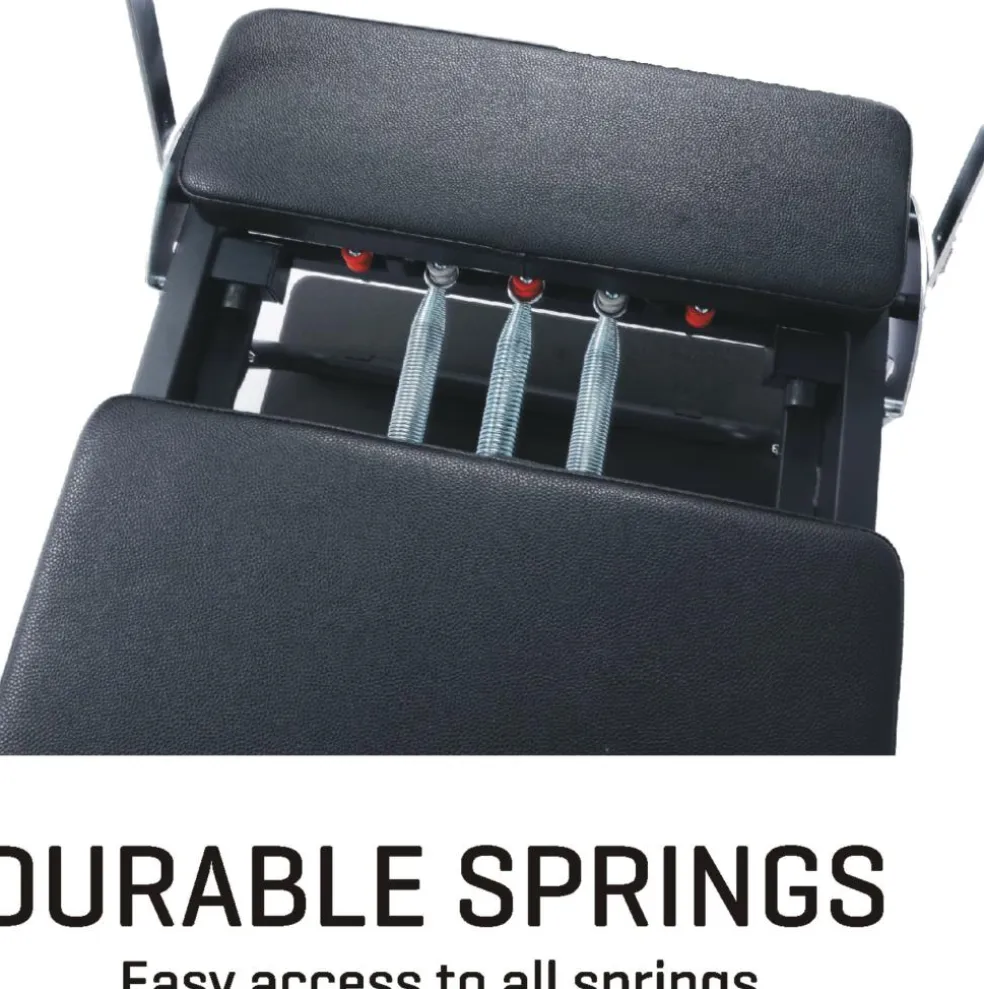 Den integrerede jumping board muliggør dynamiske bevægelser og tilføjer et kardiovaskulært element til de traditionelle Pilates-rutiner. Dette giver en skånsom konditionstræning, der er ideel til at øge udholdenhed og forbrænde kalorier uden at belaste leddene.