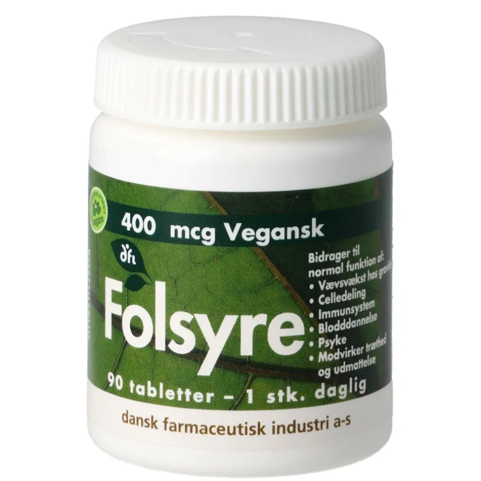 Sundhedsstyrelsen anbefaler, at kvinder tager et tilskud på 400 µg dagligt, fra de overvejer graviditet og de første 12 uger af graviditeten.