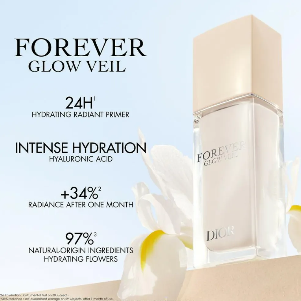 Dior Forever Glow Veil Primer er koncentreret i et fugtgivende serum og beriget med 100 %**** hyaluronsyre af naturlig oprindelse. Primeren fugter huden intenst og giver en øjeblikkelig strålende effekt. Huden bliver strålende og får en finere struktur.