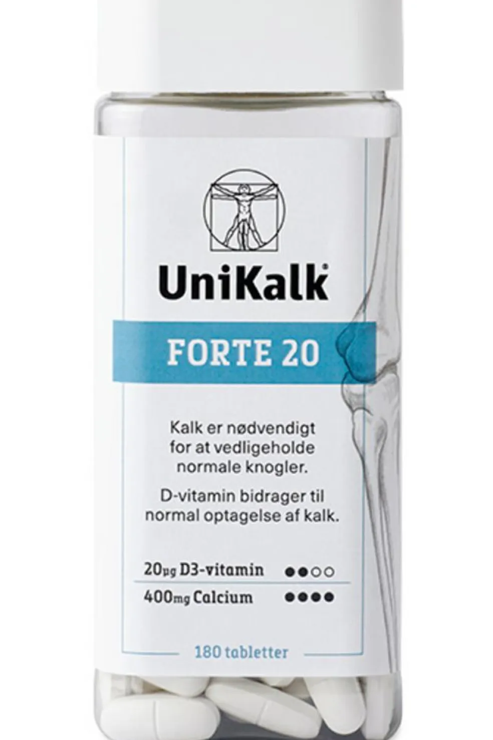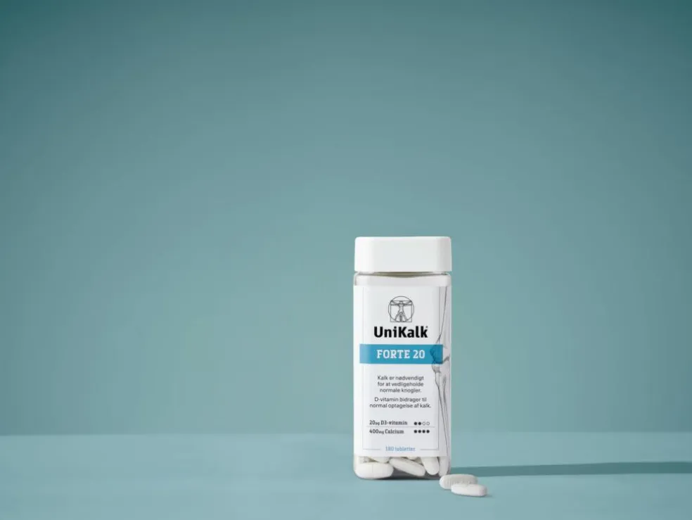 – Kalk og D-vitamin- Indeholder 20 µg D-vitamin – Kalk er nødvendigt for at vedligeholde normale knogler- D-vitamin bidrager til normal optagelse af kalk. – Synkevenlig tablet med delekærv. -Emballage sorteres som plast. Udviklet i Danmark.