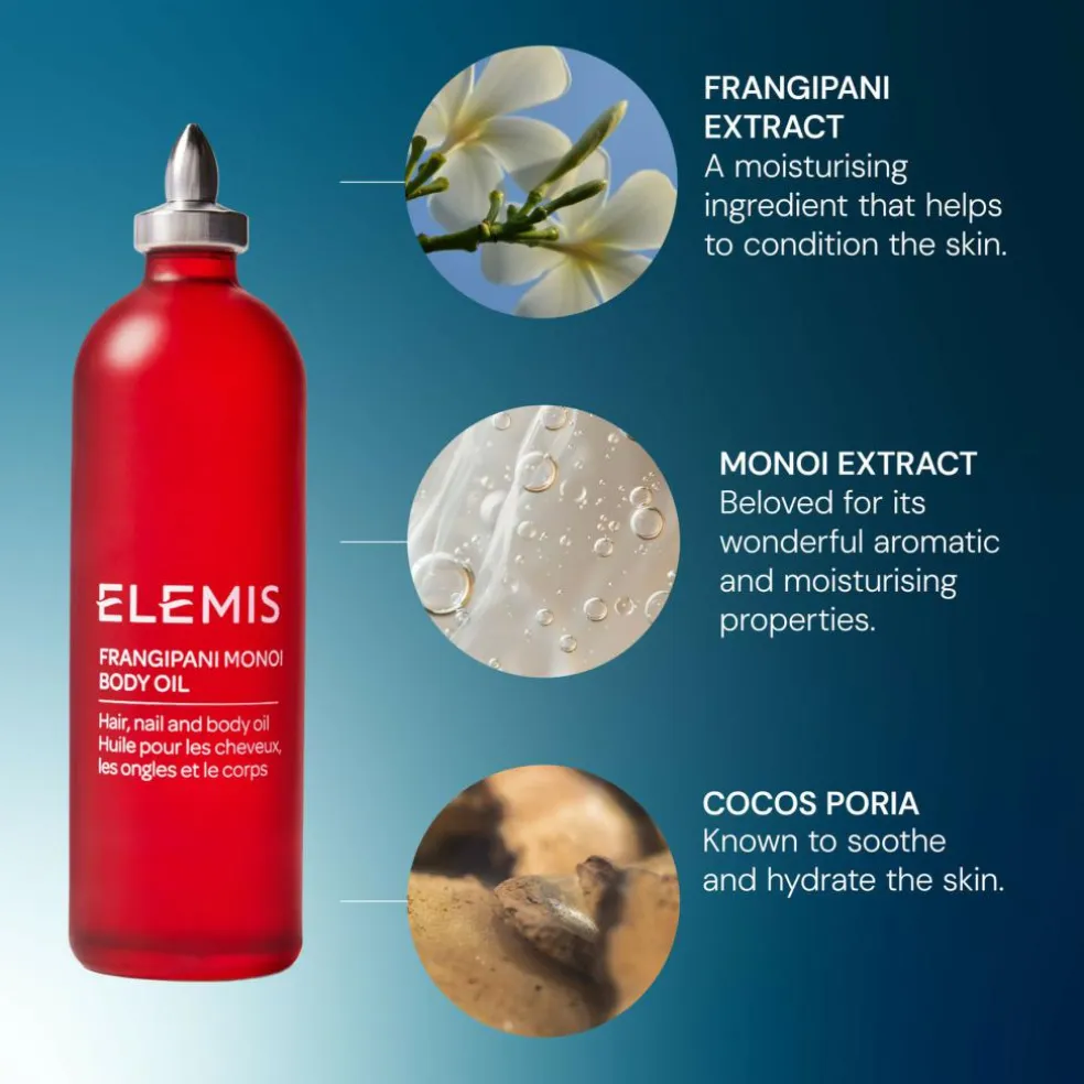 Udvundet fra Polynesiens kyster, hjælper en førsteklasses blanding af Frangipani-, Monoi- og Kokosolie med at nære din krop intenst, mens en frodig blomsterduft med noter af Appelsinblomst og Ylang Ylang fremmer fred og harmoni i sindet. Huden efterlades blød, glat og med en duft af tropisk paradis. Bemærk, at produktet størkner ved kølige temperaturer. Placer flasken i en skål med varmt vand for at få det tilbage til en silkeagtig væske.*