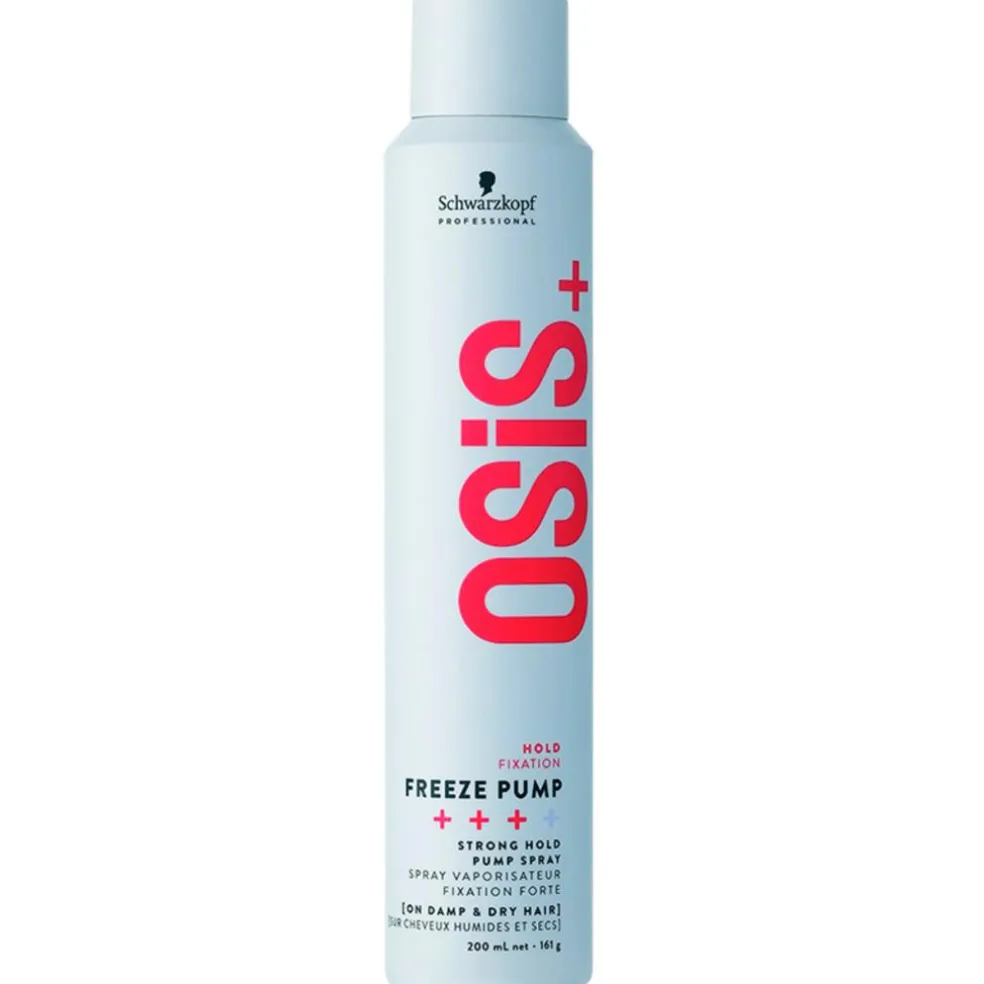 Øg volumen med OSiS Freeze Pump, en finfordelt og hurtigtørrende vegansk hårspray uden aerosol. Det giver holdbar stivhed, holder krøllerne på plads og beskytter mod varmeskader op til 230°C.