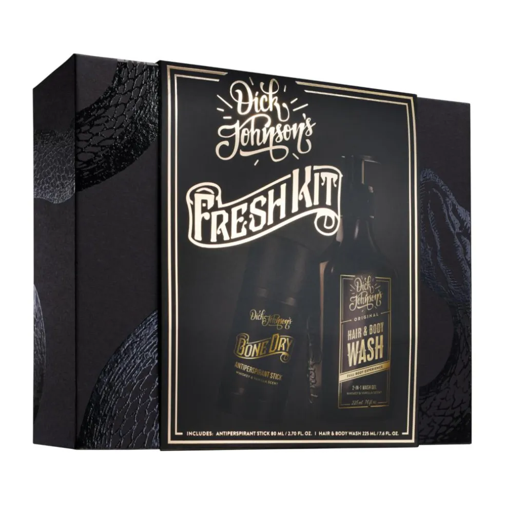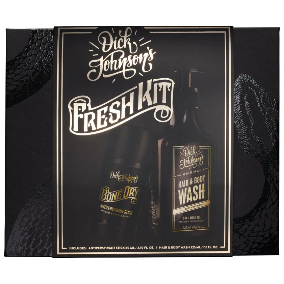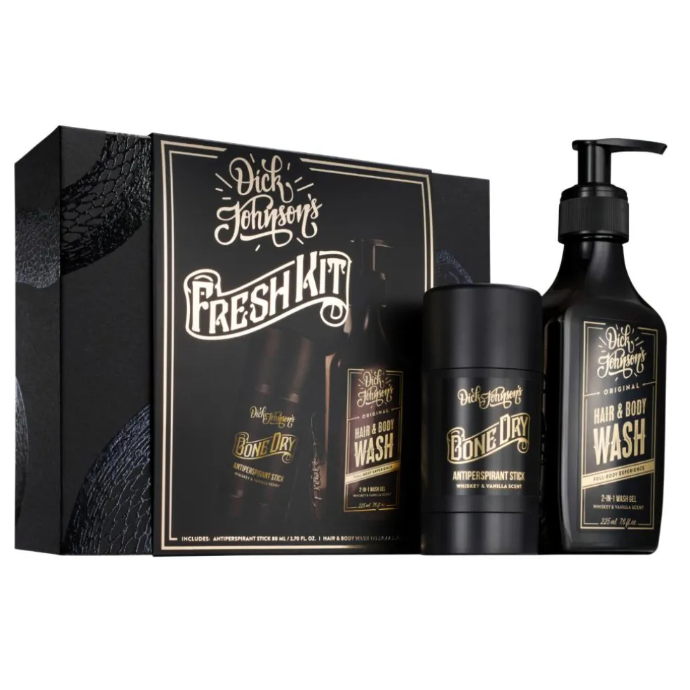 Forvandl selv den mest stinkende slyngel til en velplejet gentleman på få minutter med Dick Johnson’s Fresh Kit – det luksuriøse gaveæske med to af mænds mest essentielle produkter!
