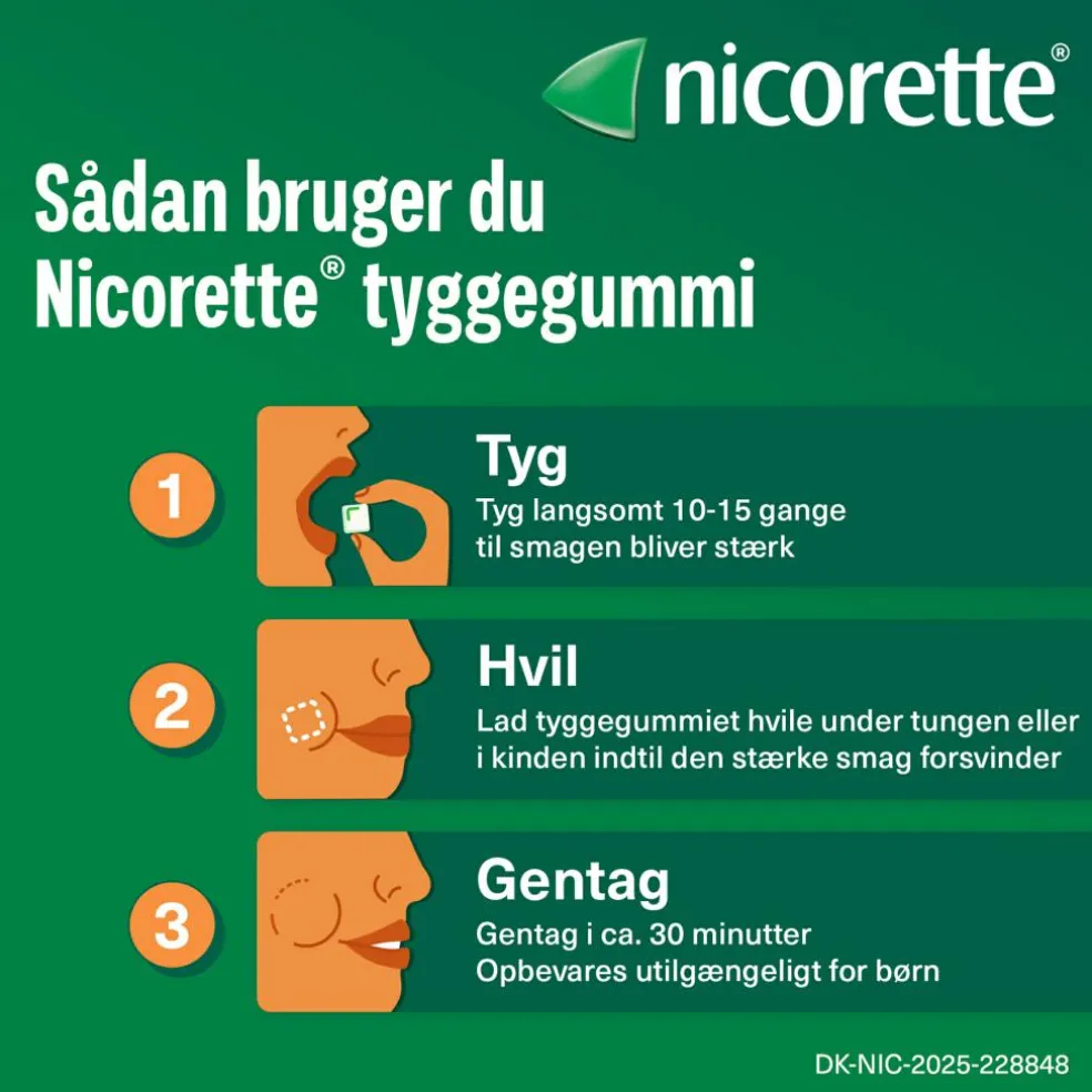 Brug altid Nicorette tyggegummi nøjagtigt efter lægens eller apotekspersonalets anvisning.