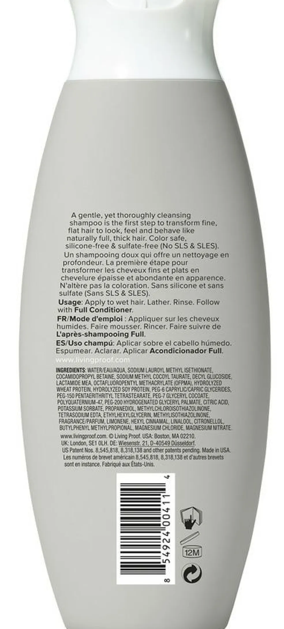 Shampooen fra Living Proofs Full-serie indeholder brandets patenterede Healthy Hair Molecule, der udover at sikre en effektiv rens af håret, giver en beskyttende effekt, så håret kan holde sig rent i længere tid.