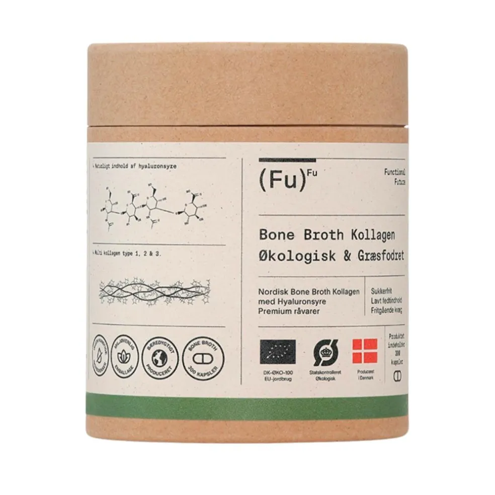Vi bruger fuldt sporbare økologiske råvarer og sikrer, at vores kvæg er græsfodret. Kollagenet kommer fra både type 1, 2 og 3.