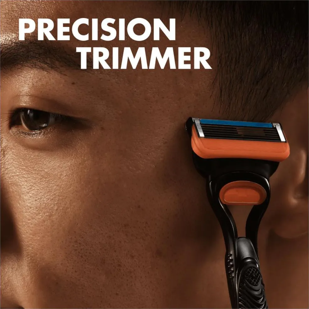 Gillette Fusion5-barberskraber til mænd med 5 antifriktionsblade, der giver en tæt barbering, der holder i længden. Bladene er placeret tæt sammen for at sikre den mest behagelige oplevelse med præcisionstrimmer bagpå til områder, der er svære at nå og til styling af ansigtshår. Verdens foretrukne skraber med fem blade, med god grund (*beregning fra Procter & Gamble baseret på salgsoplysninger fra Nielsen fra september 2018 til august 2019. Blandt skrabere med tre blade, til mænd.). Barberskraber med Gillettes 5-blades glathed til overkommelig pris Produceret med antifriktions blade, der giver op til 20 barberinger pr. blad Præcisionstrimmer til svært tilgængelige områder og styling af ansigtshår Verdens foretrukne skraber med fem blade (beregning fra P&G baseret på salgsoplysninger fra Nielsen. Sep. 2018 – aug. 2019 blandt barberskrabere med fem blade til mænd Bløde mikrofinner udglatter og blødgør nænsomt huden for at forberede den på en glat barbering
