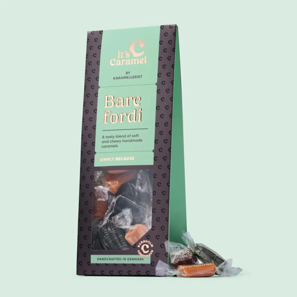 Den perfekte gave til en helt særlig person: En smuk og kærlig gaveæske med personligt budskab, fyldt med 180 g håndlavede karameller i fem uimodståelige smagsvarianter.