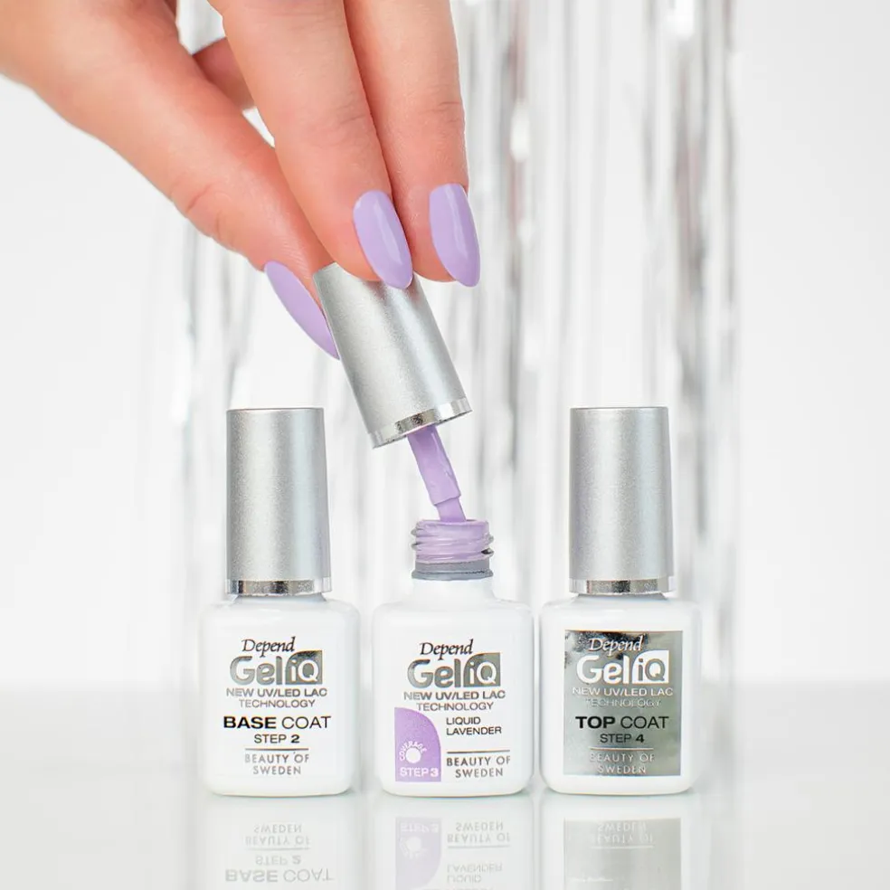Ny gelformel med høj iQ. Gel polish som hærdes under UV/LED lampe og som med 5 enkle trin giver et superglansfuldt resultat med en fylde, der adskiller sig fra en almindelig neglelak. Du behøver ikke at klargøre din naturlige negl med filning eller behandle med stærk primer. Gel iQ behøver kun let rengøring med en mild Pre-Cleanser, inden du udfører din lakbehandling. UV/LED-lampen er specialudviklet med en hærdetid på 30 sekunder for hvert påføringstrin. Symbiosen mellem lampe og lak giver en selvudjævning, hvor eventuelle rande forsvinder under hærdningen, selvom du ikke har lakeret helt jævnt. Vegansk formel, indeholder ikke råvarer af animalsk oprindelse. Anvendelse: 1. Rengøring: Påfør Gel iQ Pre-Cleanser på en bomuldspad, og rengør neglene omhyggeligt.2. Underlak: Påfør et tyndt lag Gel iQ Base Coat. Hærd i 30 sekunder i UV/LED-lampen.3. Farve: Påfør et tyndt lag Gel iQ Farve. Hærd i 30 sekunder i UV/LED-lampen. Påfør herefter endnu et tyndt lag Gel iQ Farve, og hærd i 30 sekunder i UV/LED-lampen.4. Overlak: Påfør et tyndt lag Gel iQ Top Coat, og hærd i 30 sekunder i UV/LED-lampen.5. Rengøring/Top Finishing: Neglen har nu en klæbrig overflade, som skal af for at frembringe den optimale glans. Derfor er det vigtigt, at hele neglefladen rengøres med Gel iQ High Shine Cleanser. Tør neglefladen af med et fast træk for at få den klæbrige overflade af. Sørg for at have mindst 12 bomuldspads til rådighed.