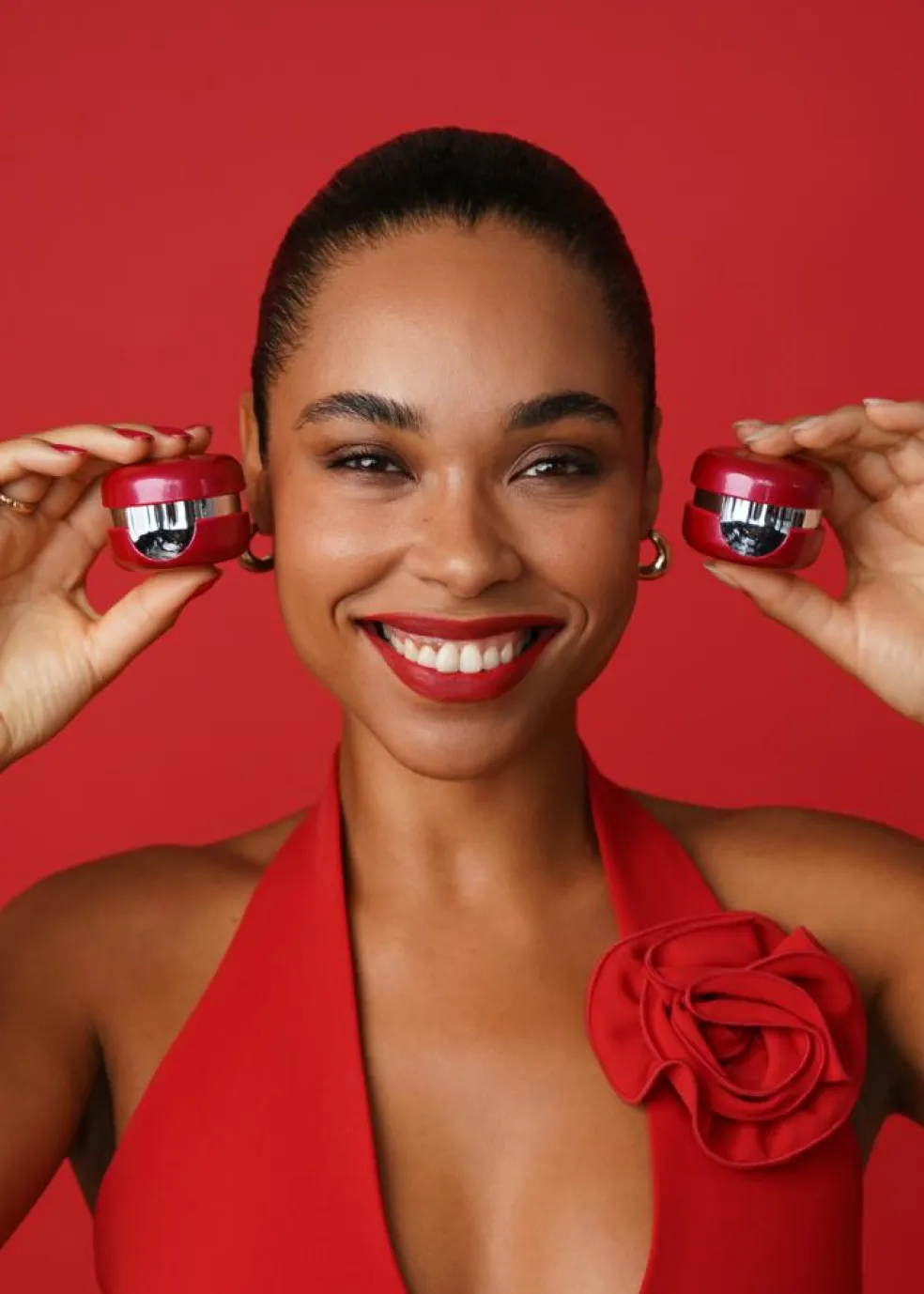 1-step Gel Manicure i den røde glimmerfarve Ruby Red.