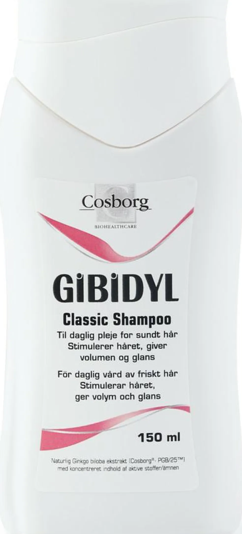 Et kraftigere hår vedligeholdes med brugen af Gibidyl Classic shampoo. Shampooen indeholder speciel ekstrakt (Cosborg®-PGB/25™) fra den anerkendte plante ginkgo biloba, som stimulerer hovedbunden, så der transporteres flere næringsstoffer og mere ilt til hårsækkene i deres vækstfase. Den forøgede tilførsel forbedrer hårsækkenes funktion, hvilket har stor betydning for hårets fyldighed. Shampooen indeholder 1/3 mængde af koncentreret ginkgo biloba i forhold til Gibidyl Advanced shampoo og Gibidyl Forte shampoo og er beregnet til vedligeholdelse. De første tre måneder anbefales det at anvende Gibidyl Advanced shampoo eller Gibidyl Forte shampoo for at opnå en kraftig virkning. Herefter kan der fortsættes med Gibidyl Classic shampoo til vedligeholdelse af opnået effekt. For optimal effekt fortsættes med brugen af Gibidyl Advanced shampoo eller Gibidyl Forte shampoo.