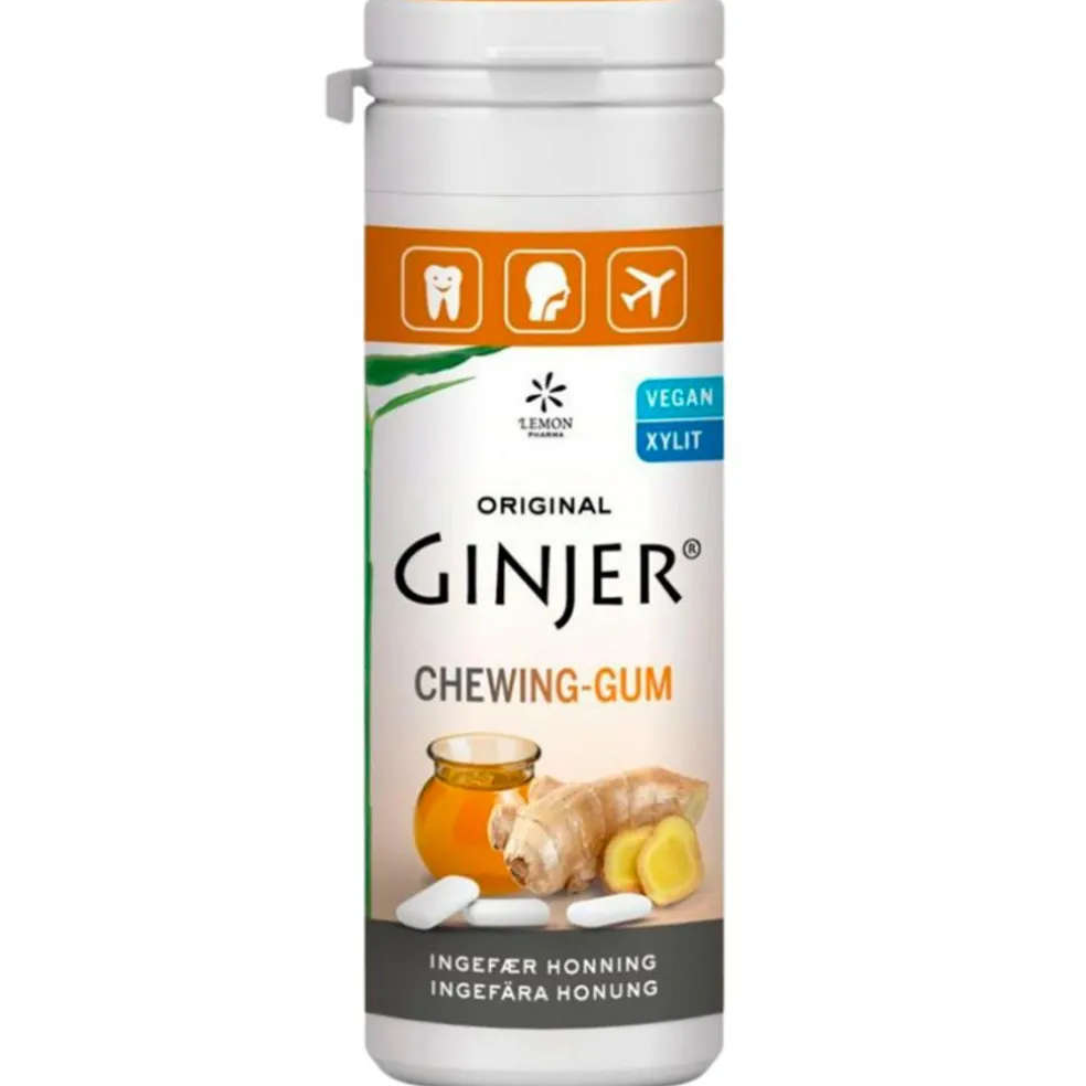 Sukkerfri GINJER® tyggegummi med ingefær- og honningsmag er mange rigtig glade for. Produceret efter ‘Melted-Gum’ metoden.