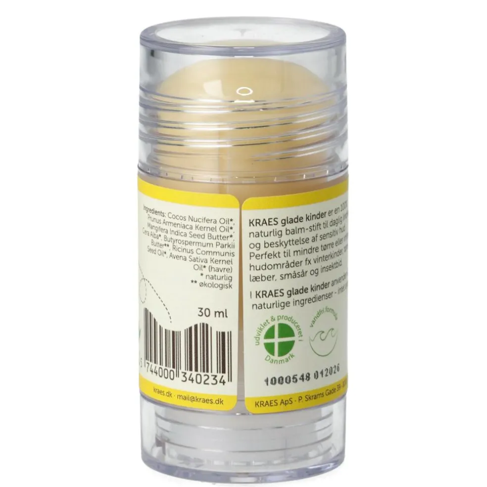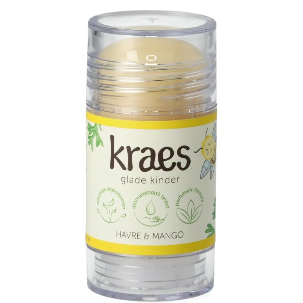 KRAES glade kinder indeholder udelukkende 100% naturlige ingredienser, hvorfor du også kan bruge plejesticken til at lindre sarte brystvorter uden at bekymre dig om, hvorvidt dit barn bliver udsat for unødvendig, syntetisk kemi. Den indeholder havreolie, kokosolie, sheasmør, mangosmør, castorolie, abrikoskerneolie, bivoks og intet andet!