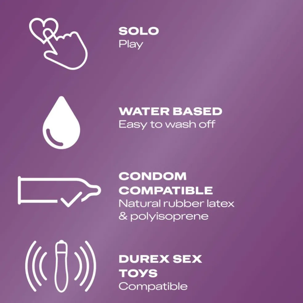 Kan anvendes sammen med latexkondomer, polyisoprenkondomer og sexlegetøj fra Durex.