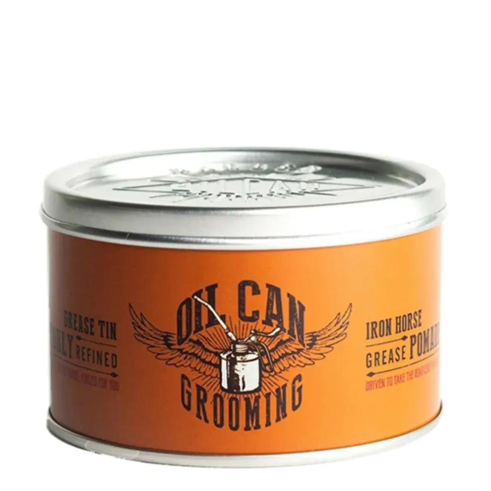 Iron Horse Grease Pomade fra Oil Can Grooming er et unikt stylingprodukt til det glatte look, udglatning af krøller etc. Påfør moderat for et fedtet look eller nøjsomt for at tæmme de lidt længere hårlængder.