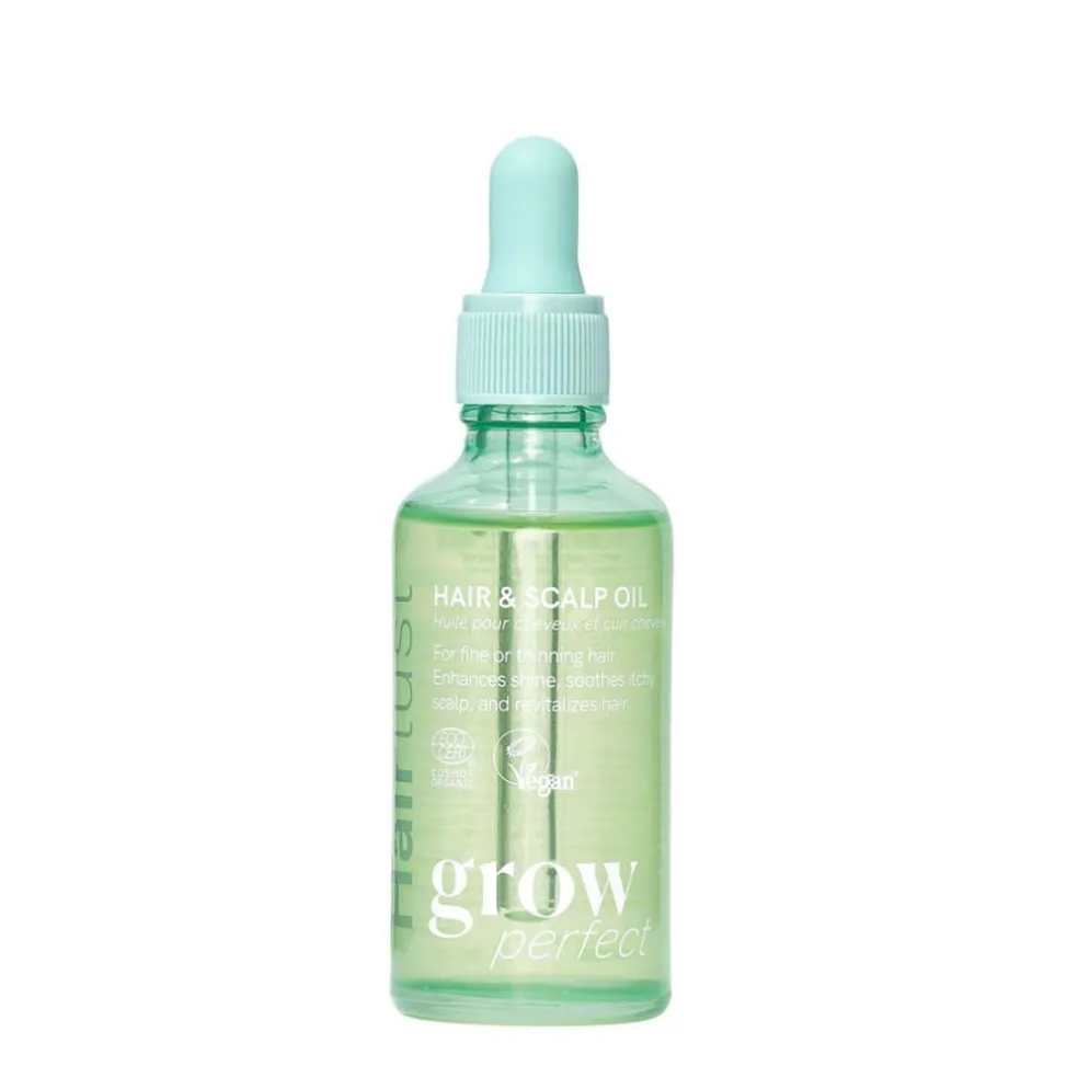 Grow Perfect™ Hair & Scalp Oil er det ultimative naturlige produkt til at bringe dit hår og hovedbund i balance. Denne kraftfulde blanding af otte kraftfulde og økologiske olier fra rosmarin, kaffebønner, cedertræ, timian, lavendel, bergamot, solsikke og jojoba – nærer og beroliger hovedbunden, fremmer sund hårvækst og tilføjer en naturlig glans.