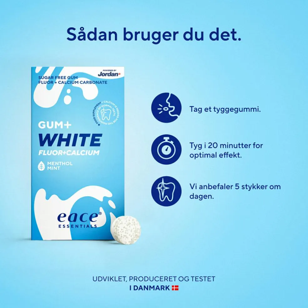 Anbefalet daglig dosis: 5 stk. Anbefalet daglig dosis bør ikke overskrides. Anbefales ikke til børn under 12 år. Tyg tyggegummiet i minimum 5 minutter efter indtag af mad eller drikke.