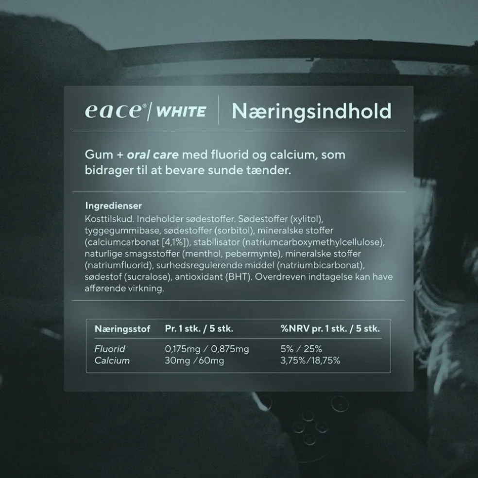 Kosttilskud. Tyggegummi med fluorid og calcium. Indeholder sødestoffer. Overdreven indtagelse kan virke afførende.
