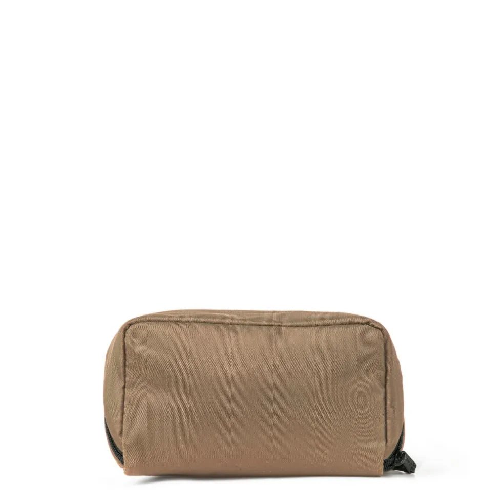 Den lukkes med en lynlås, og indeni har den to åbne rum samt en lynlås lomme, så du nemt kan organisere din make-up.