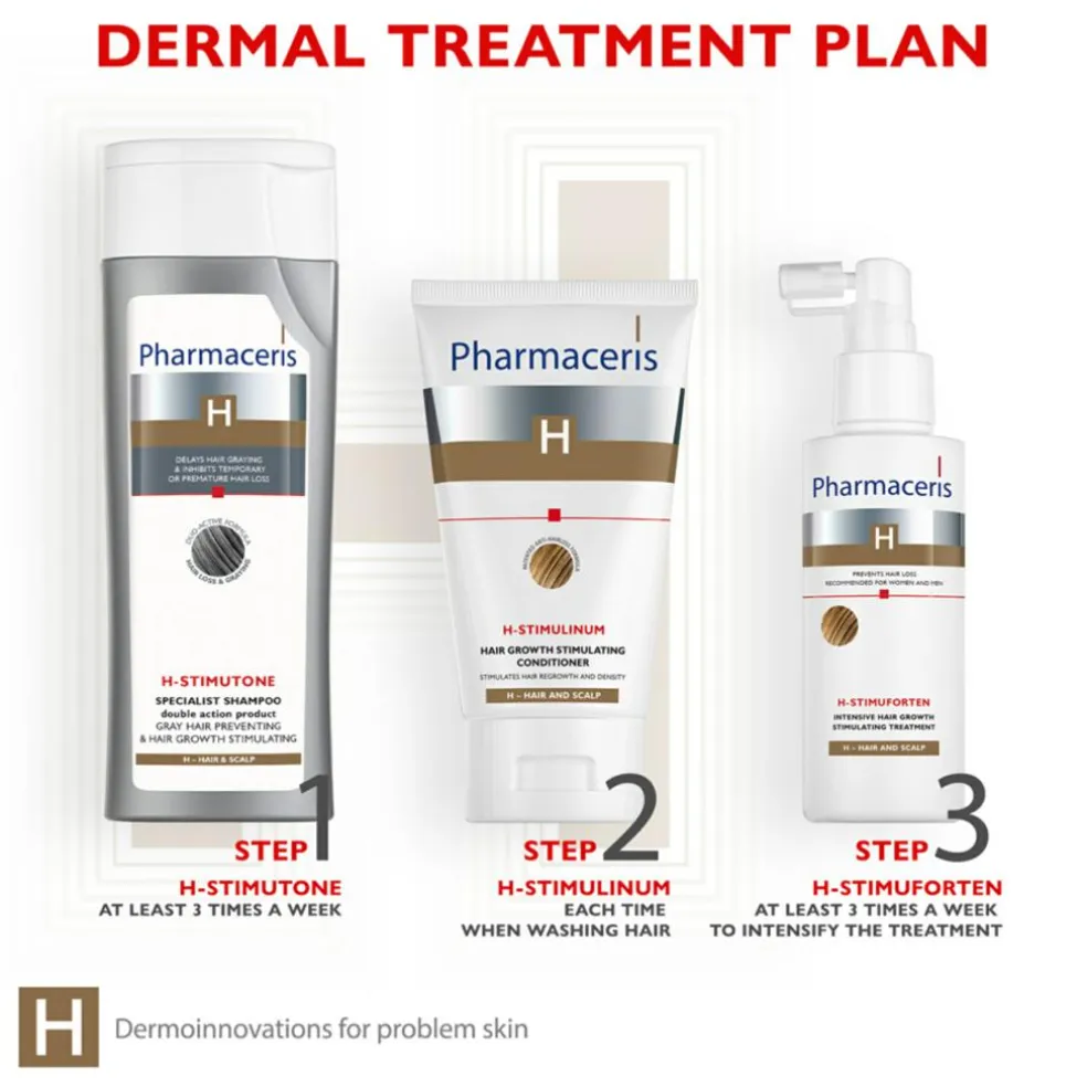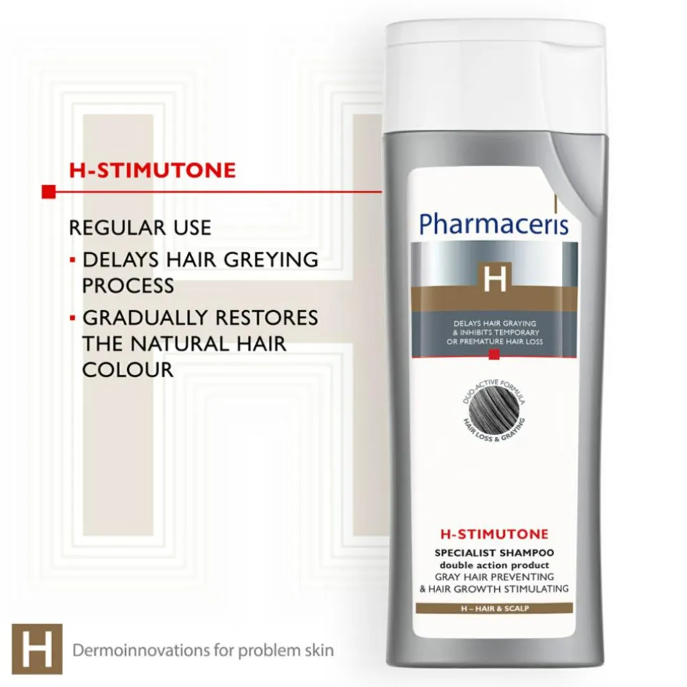 D-panthenol og kationiske polymerer med beroligende og regenererende egenskaber gendanner hovedets naturlige pH-værdi og hjælper med at opretholde optimal hydrering.For at forbedre hårvækststimulerende virkning anvendes shampooen i kombination med Pharmaceris H-STIMULINUM balsam og produkt H-STIMUFORTEN.