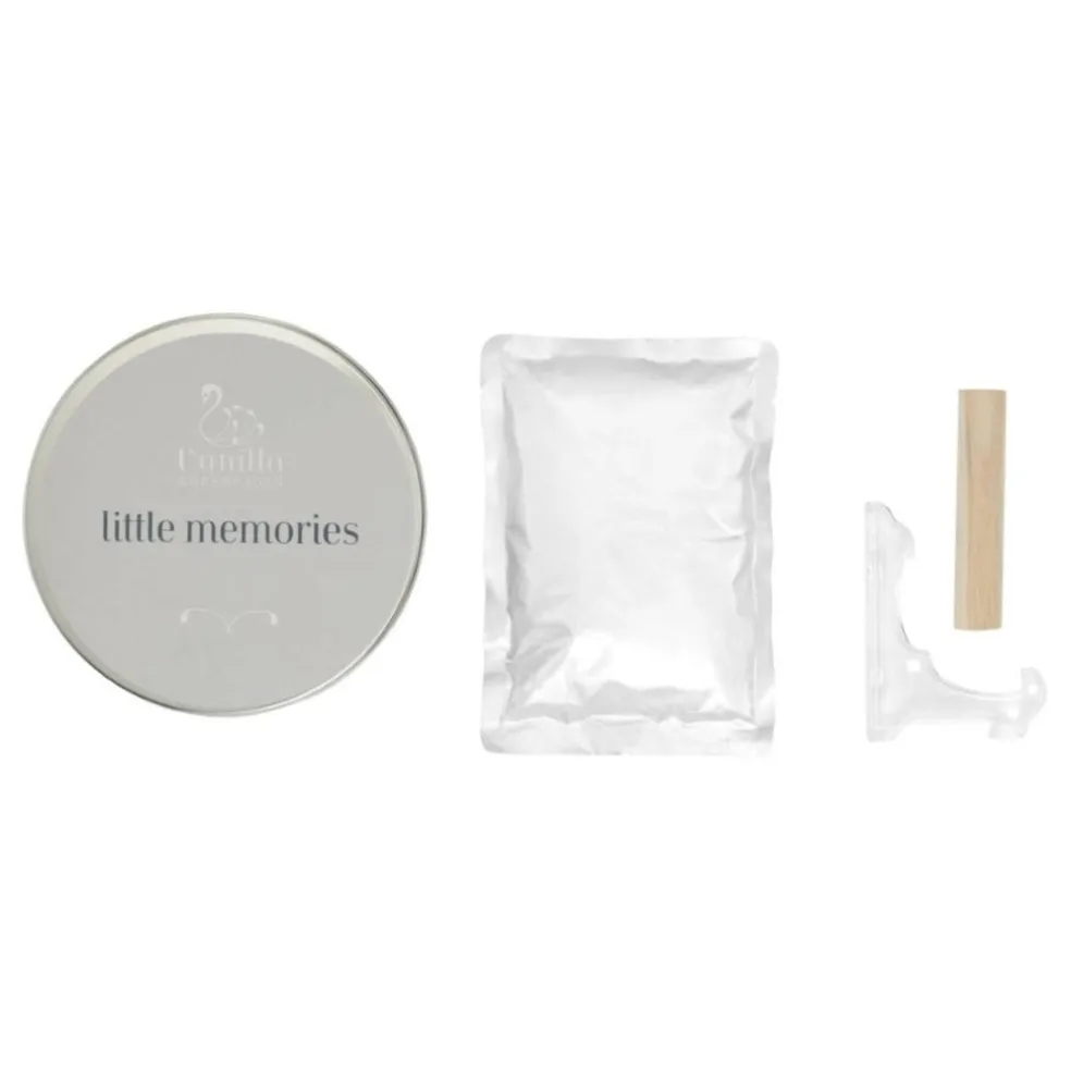 Komplet sæt med alt hvad du har brug for til at kunne lave et aftryk af barnets fod eller hånd derhjemme! Resultatet er et vedvarende og smukt minde, perfekt til dit eget hjem eller som gave.