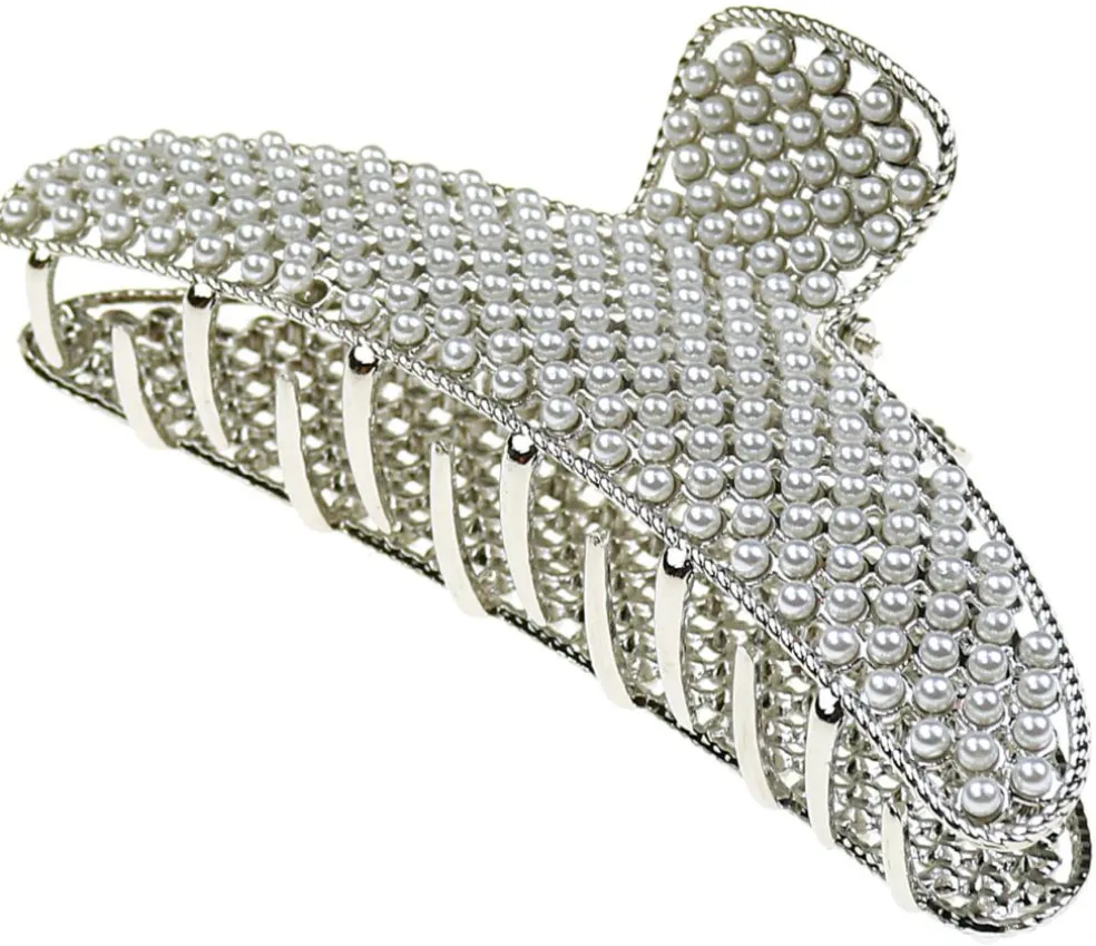 Hårklemme havlmåne facon med perler 11,5 cm.