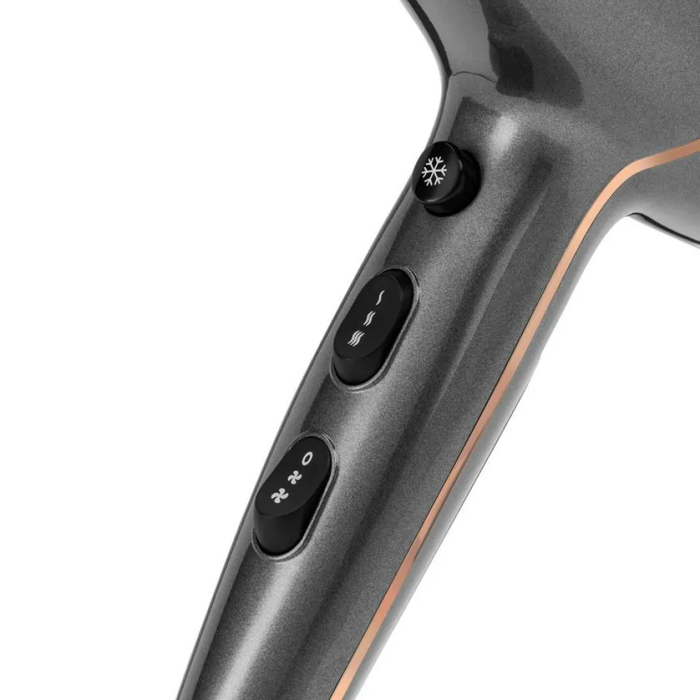 Hårtørrerens keratin- og turmalin-belagte gitter modvirker krus og tilfører ekstra glans.