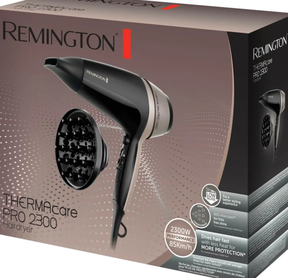 Med dens kompakte og lette design, er Thermacare Pro 2300 perfekt, når du er på farten. Den ser ikke blot godt ud, men den lyder også godt! Mindre larm fra denne stille hårtørrer gør det til en endnu bedre styling-oplevelse.