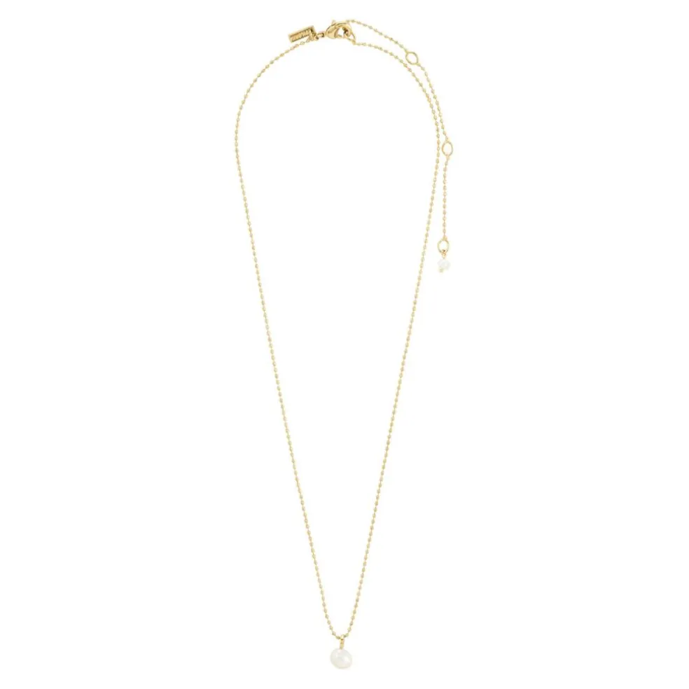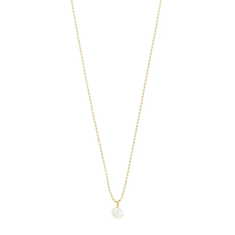 Guldbelagt bead chain med diskret vedhæng af ægte ferskvandsperle – et perfekt touch af sødme og enkelhed.