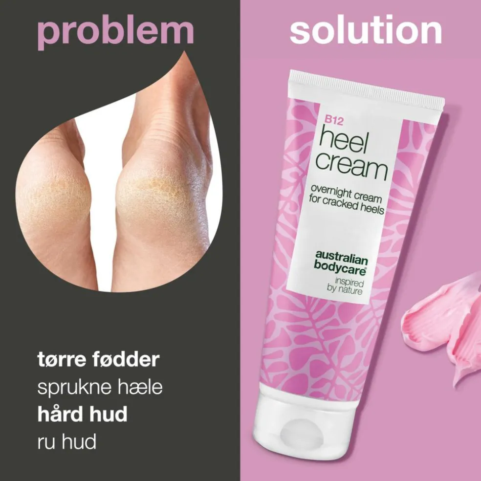 Lider du af tørre fødder, revnede hæle eller hård hud? Vores hælkrem med 25% urea og Vitamin B12 giver intensiv fugt og pleje til selv den tørreste hud.
