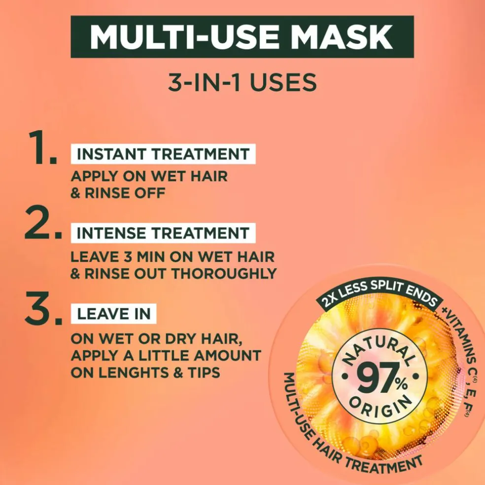 • 3-i-1-hårkur som kan anvendes som balsam hårkur eller leave-in