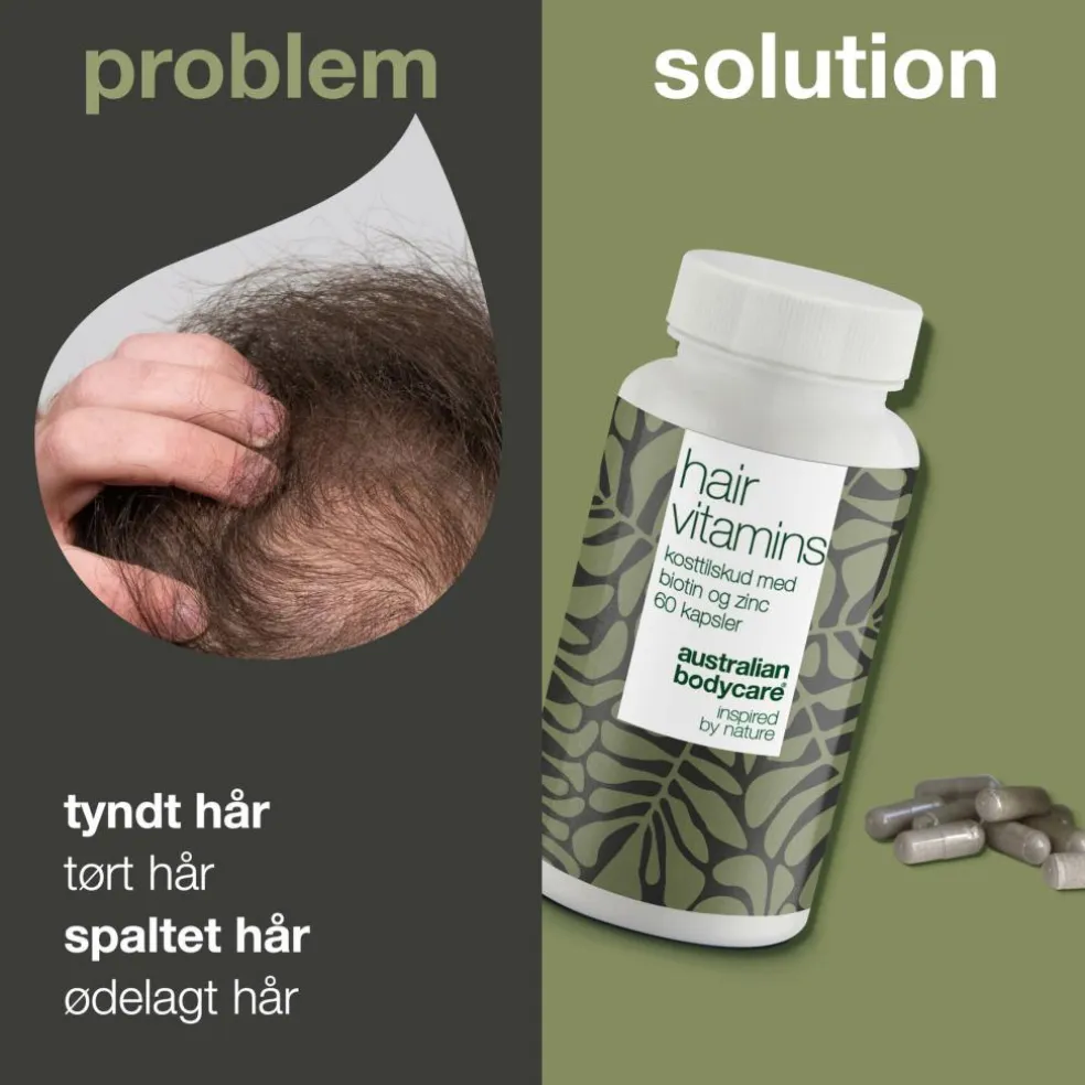 Australian Bodycare Hair Loss Care med bl.a. Biotin, Zink og Agerpadderokke. Kan tages af både mænd og kvinder.
