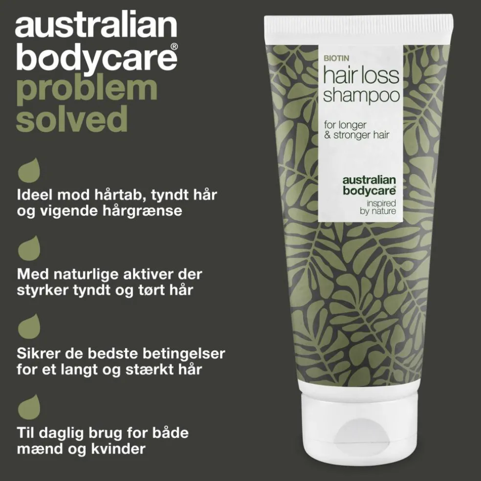 Hårtabsshampoo fra Australian Bodycare til både mænd og kvinder indeholder Capilia Longa og Biotin, som bidrager til et sundt og stærkt hår. De aktive ingredienser er bevist effektive ved hårtab og fint hår.